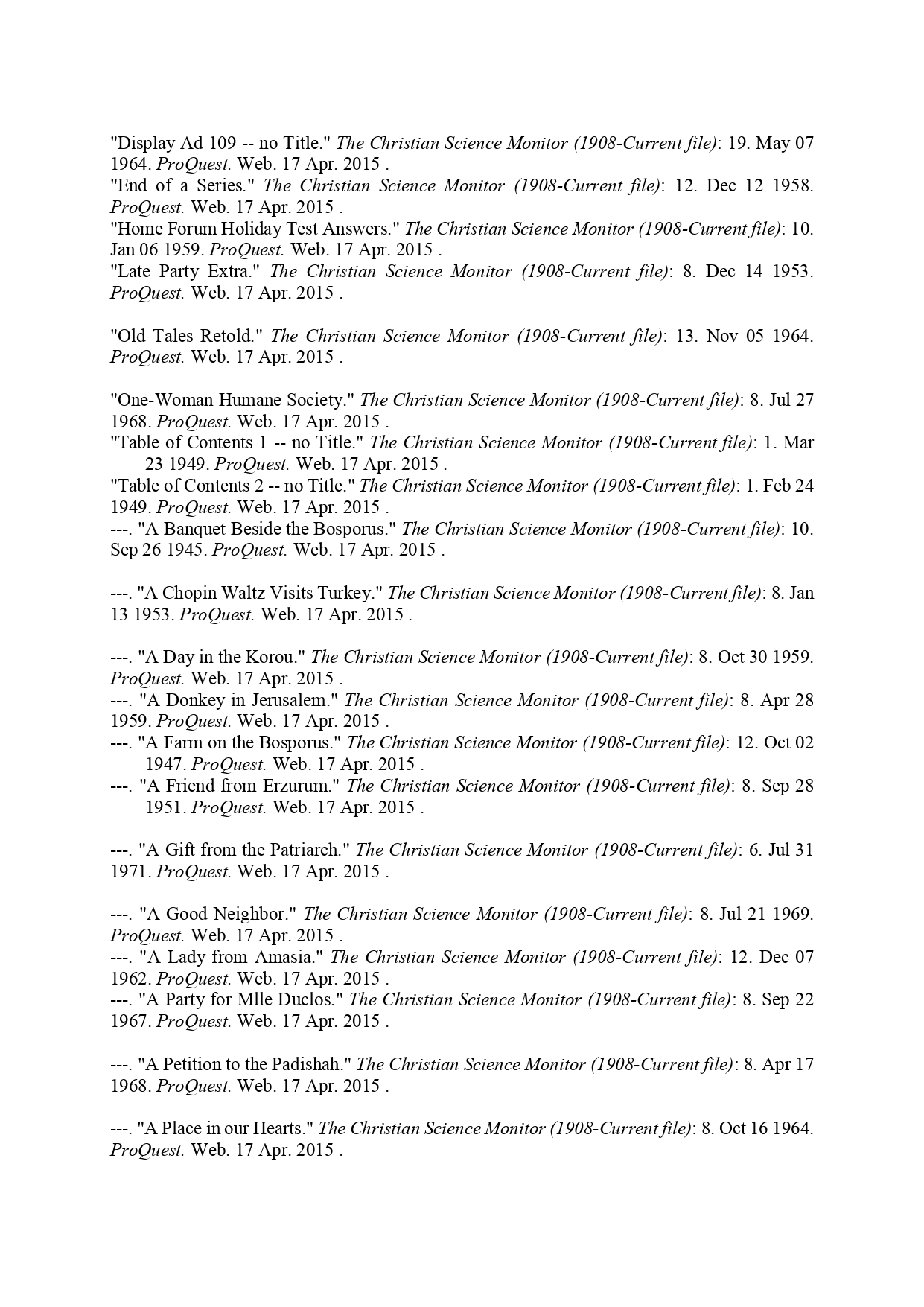 Selma Ekrem'in The Christian Science Monitor dergisinde çıkan gazete yazıları